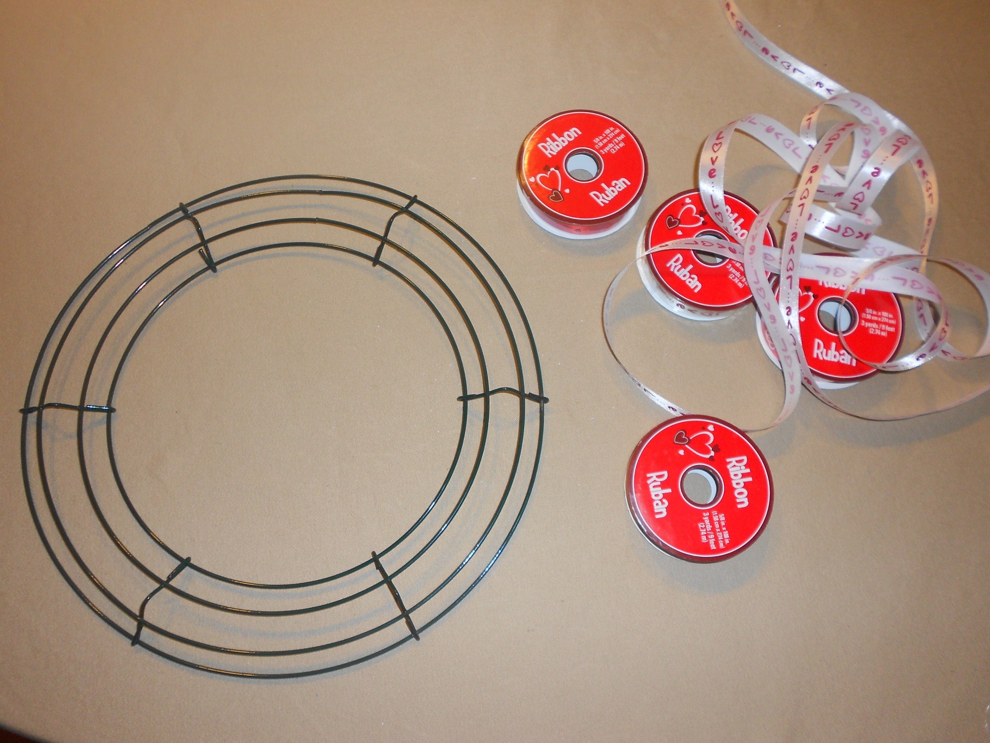 ***I already had the wire wreath at home, so I only had to purchase the ribbon and picks at Dollar Tree.