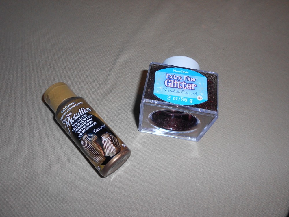 A small bottle of metallic paint and fine glitter that you can buy for cheap at craft stores.