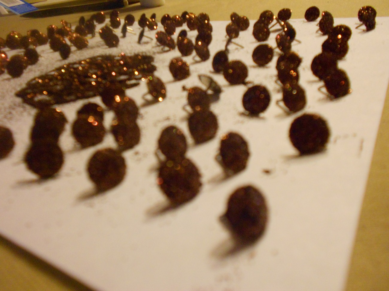 After all the thumbtacks are dry (I let the tacks dry for several hours), start pressing them into the letter.
