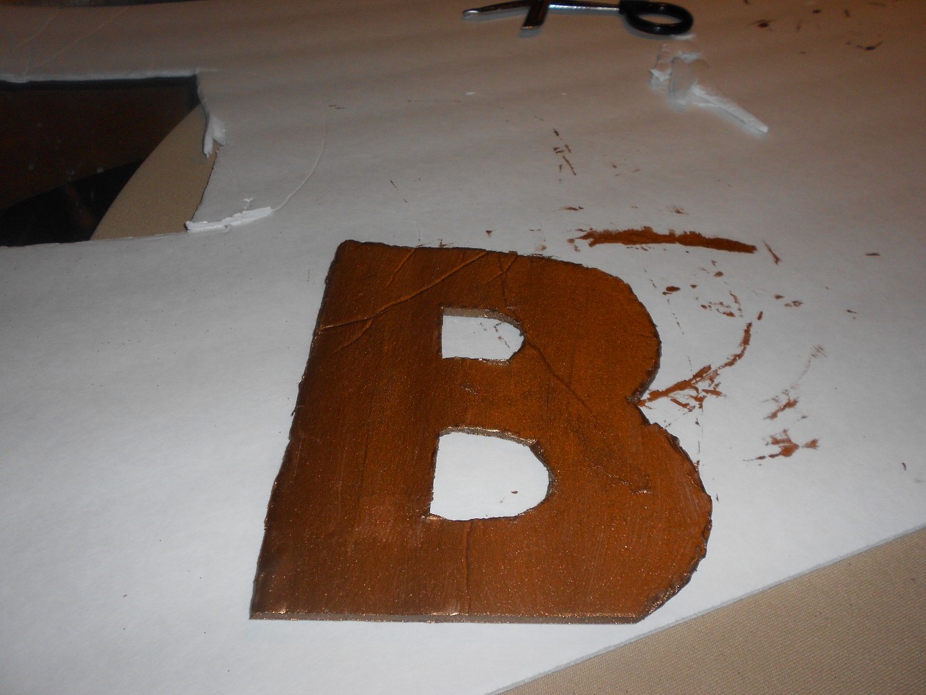As the thumbtacks are drying, start working on the letter. Draw the letter on a foam board and then cut the letter out. I painted the letter so that there wouldn’t be any white spaces showing through the thumbtacks.