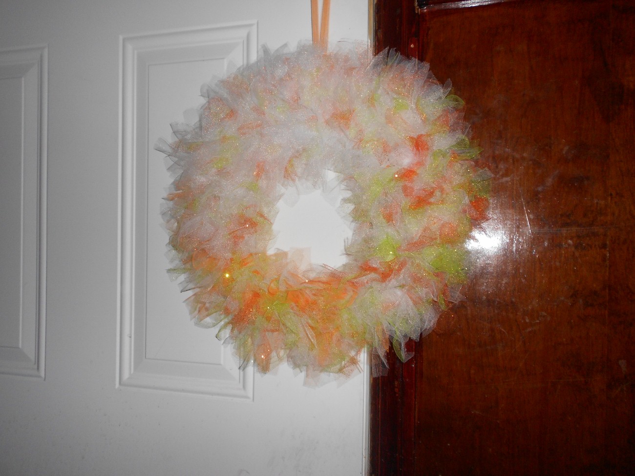 Even though this is an easy project to make, it still takes a few hours to cut and tie the tulle around the wreath.