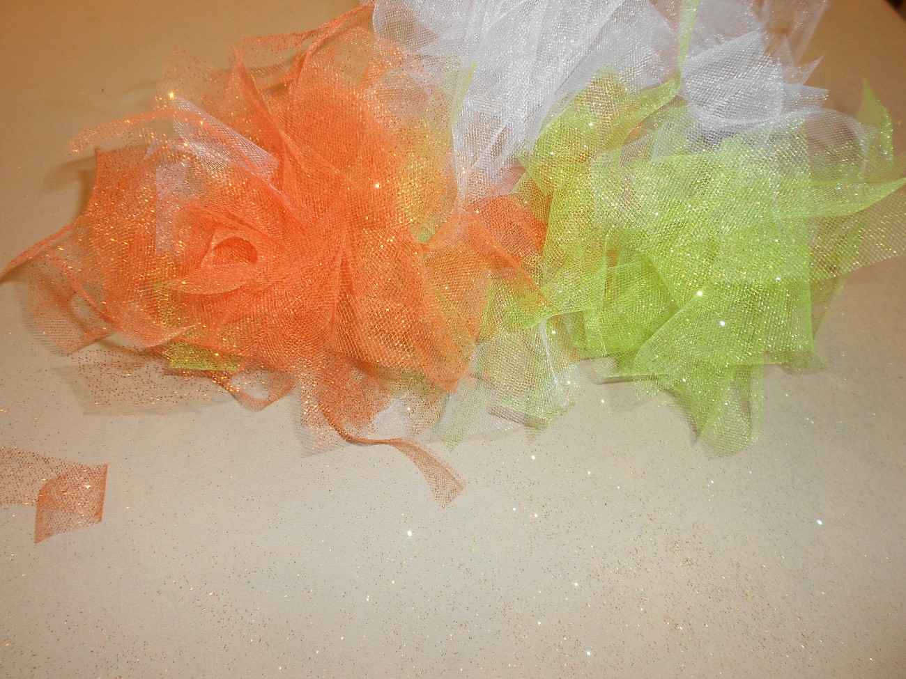 - 1 roll of 6″x25 yds Orange Sparkle Tulle