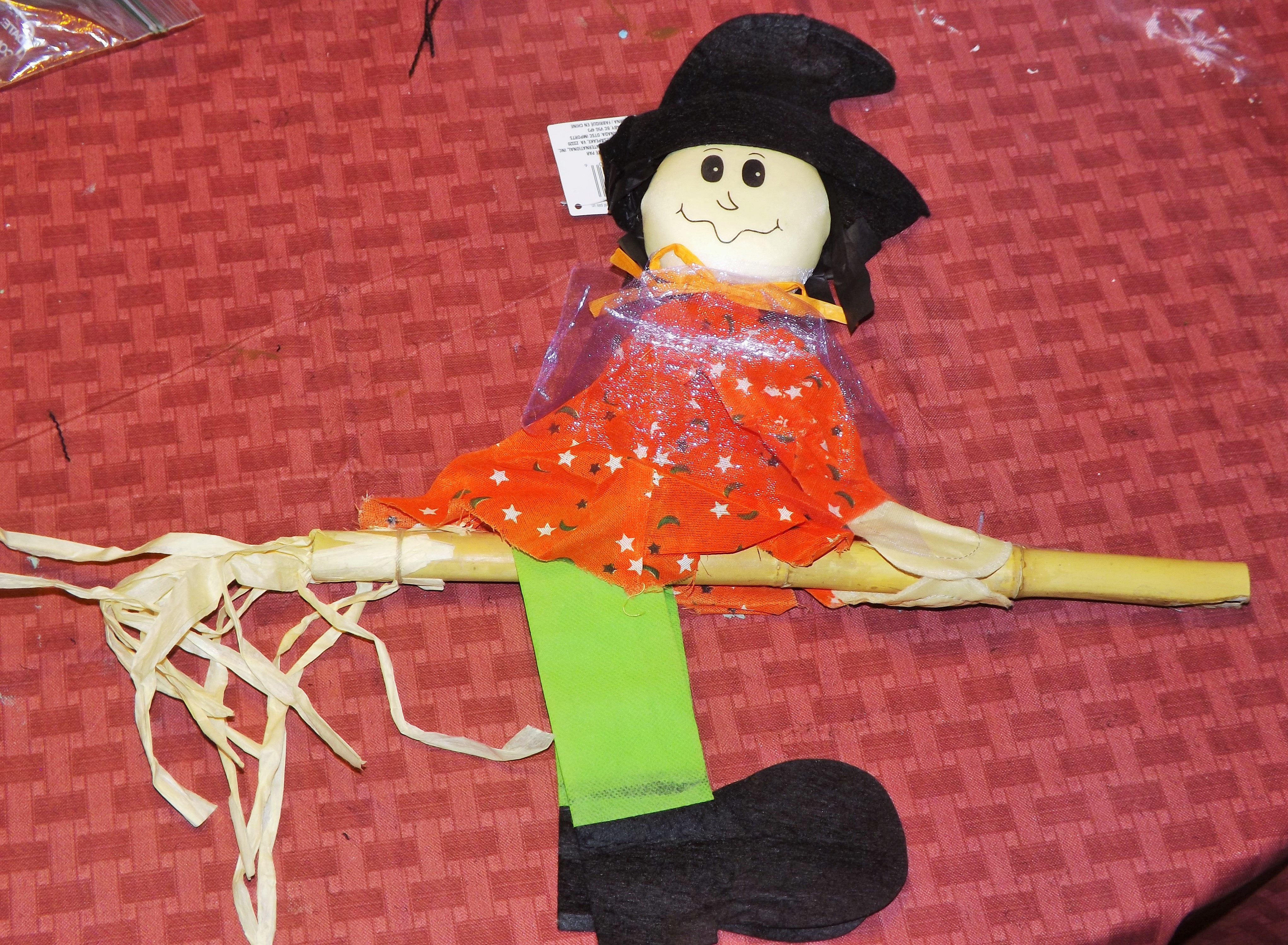 I used the straight pins again to secure the Halloween decorations to the wreath.