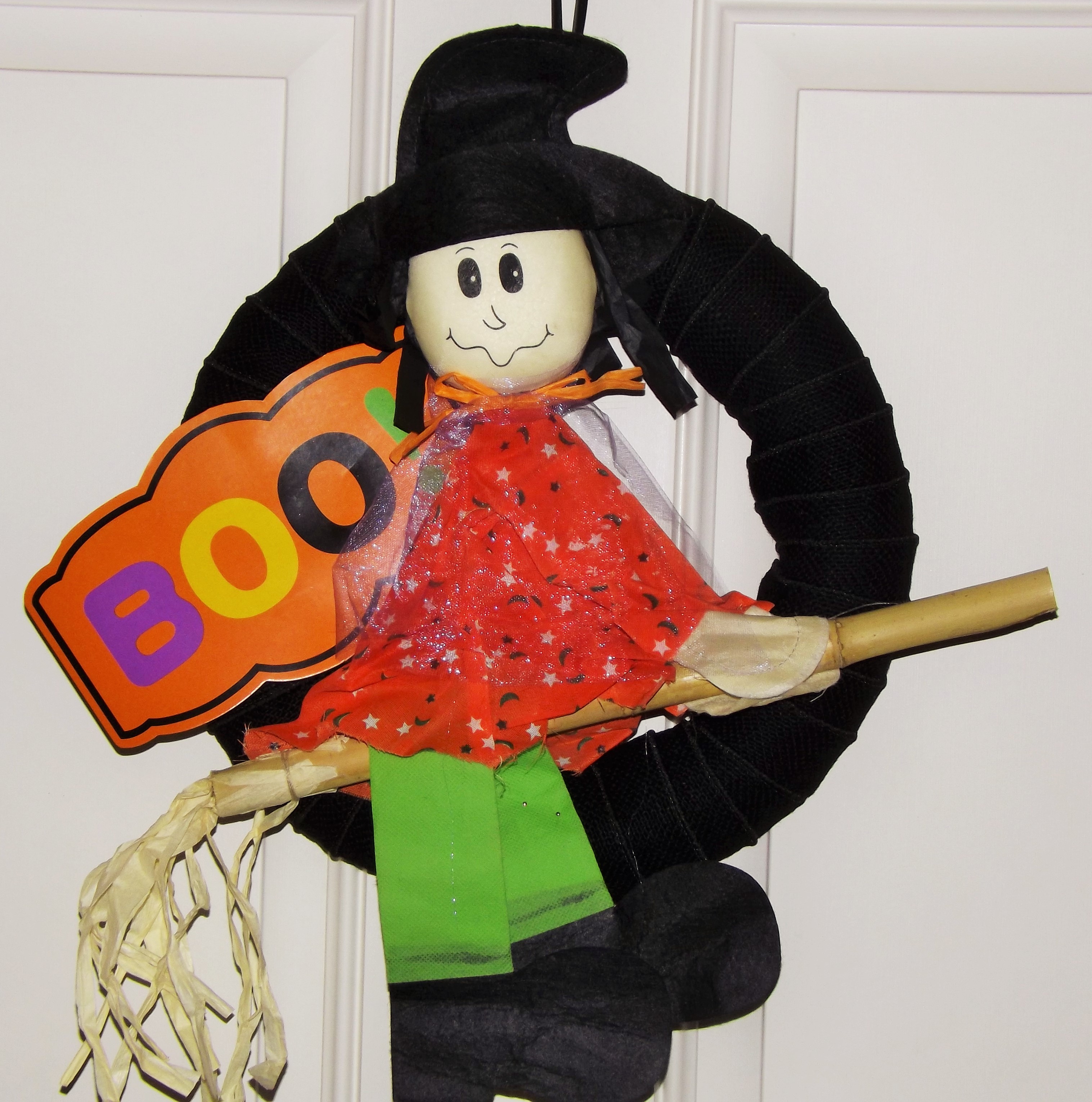 This is a quick and easy project if you are still looking for last-minute Halloween decorations. I made this using a 12 in. foam wreath, straight pins, black polyester ribbon, and Dollar Tree Halloween decorations.