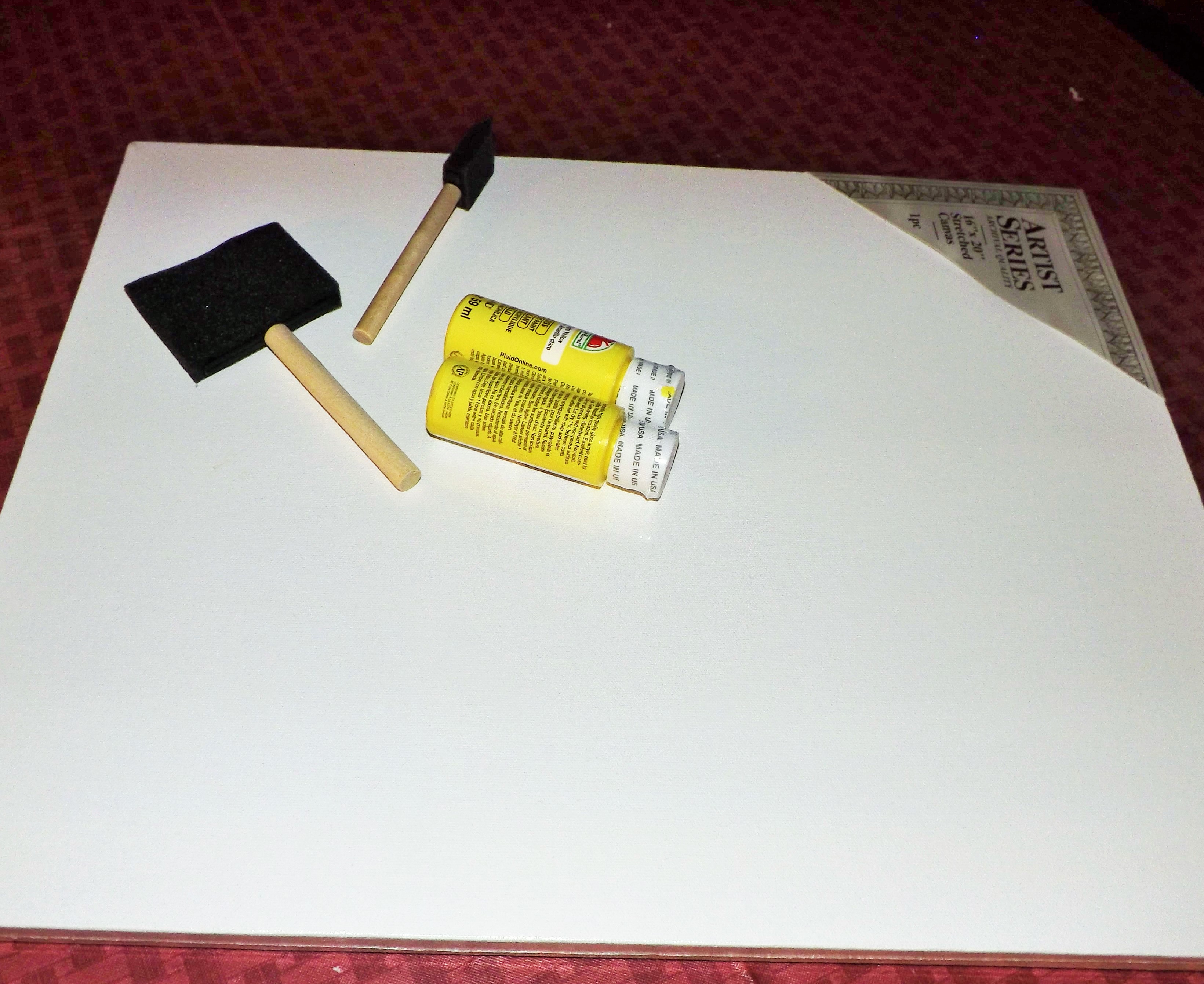 I started off by painting the entire canvas yellow. This color makes me happy and instantly puts me in a good mood.