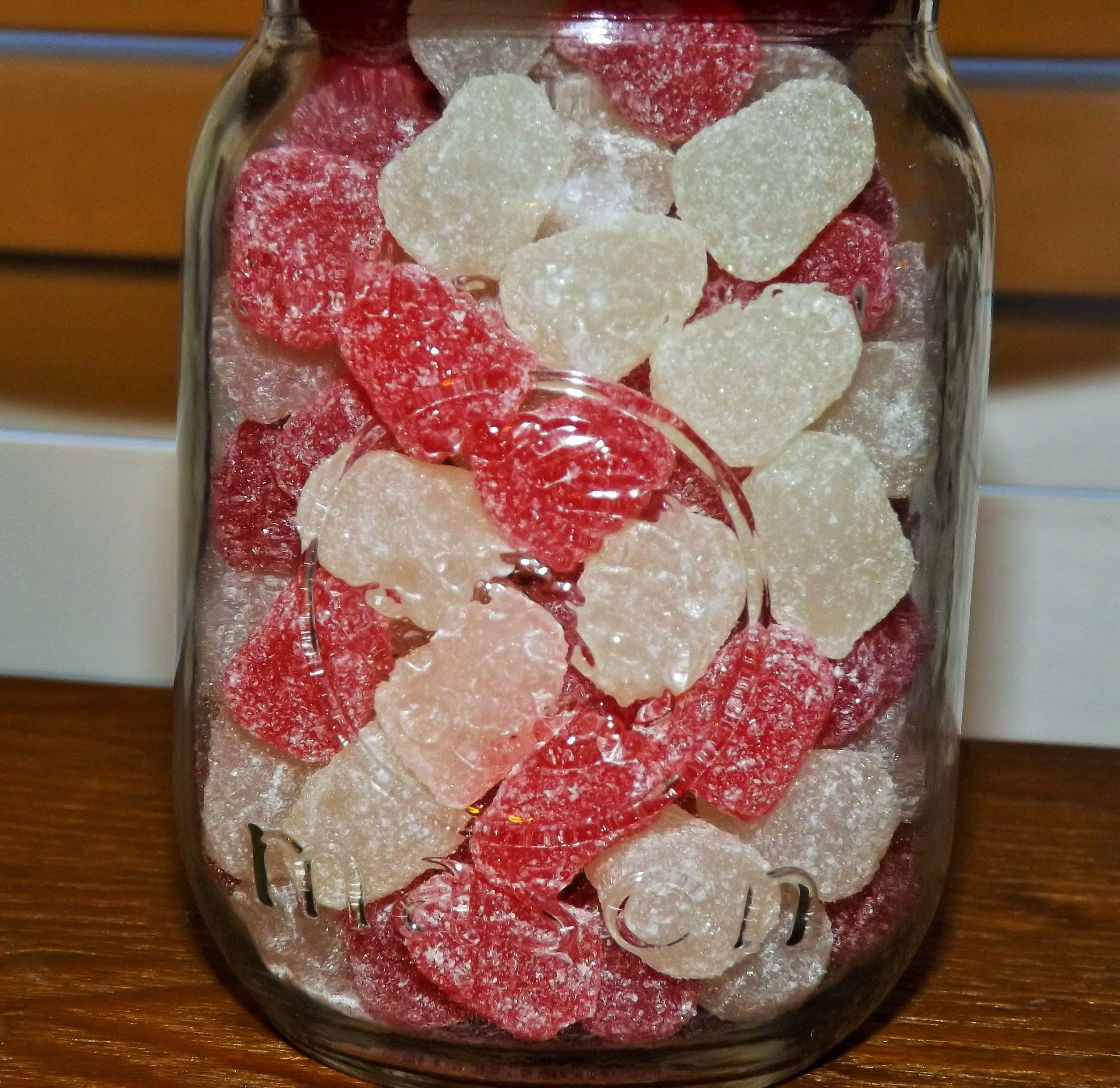 I wanted to share this idea with anyone who wanted to make a unique Valentine’s gift for loved ones or find a fun way to decorate for Valentine’s Day. I think mason jars are a great way to display candy and other items. I loved pairing the jar with the lamp shade.