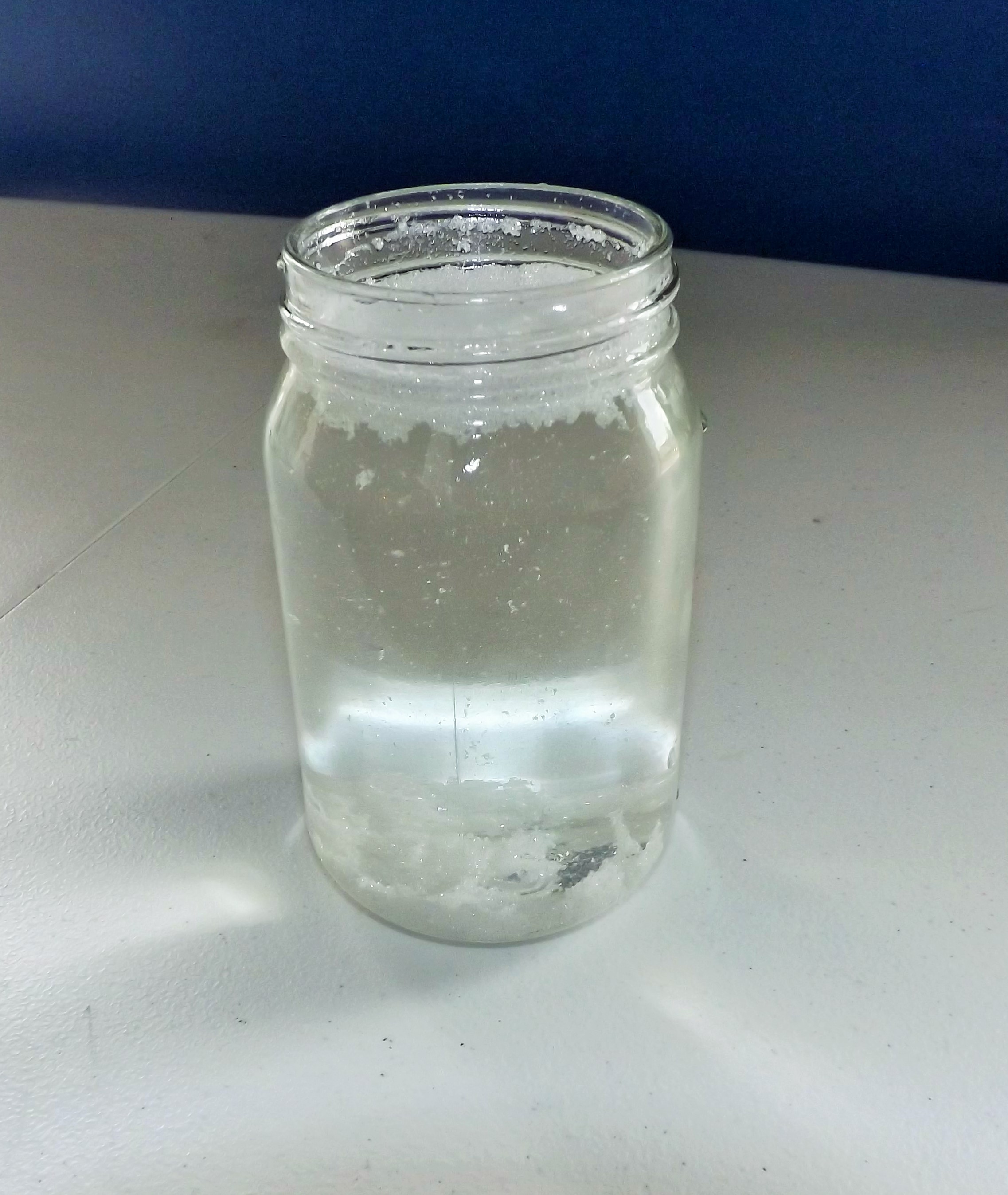 I poured water, glitter, and one drop of glycerin into the jar.