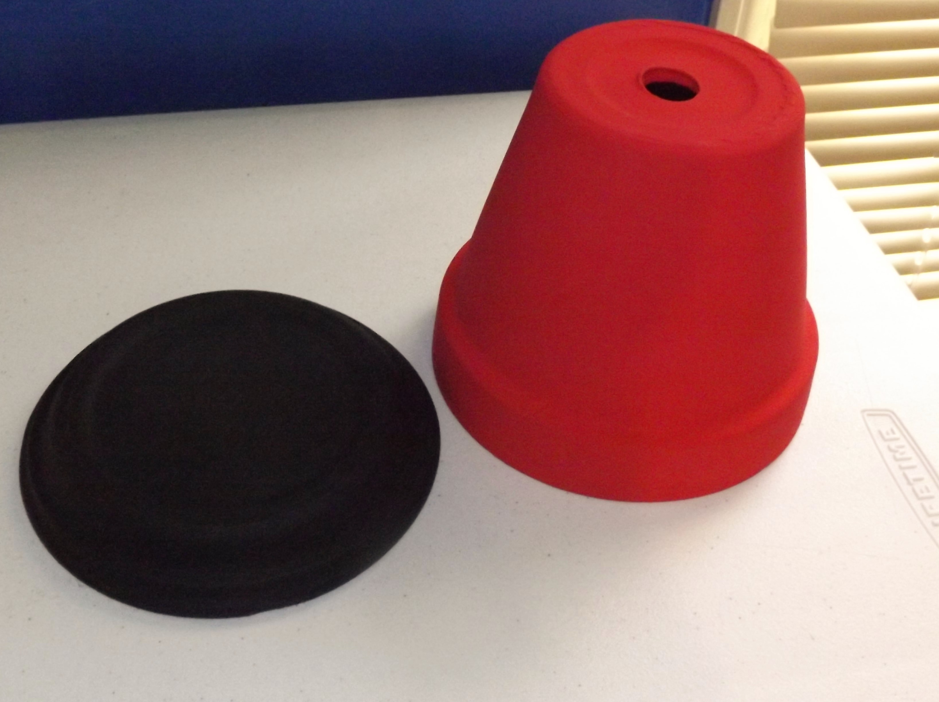 I started off by painting the flower pot red and the lid black. I applied three coats of paint to get the right color. After the paint was dry, I sealed the pot and lid with Mod Podge to make sure the paint didn’t chip.