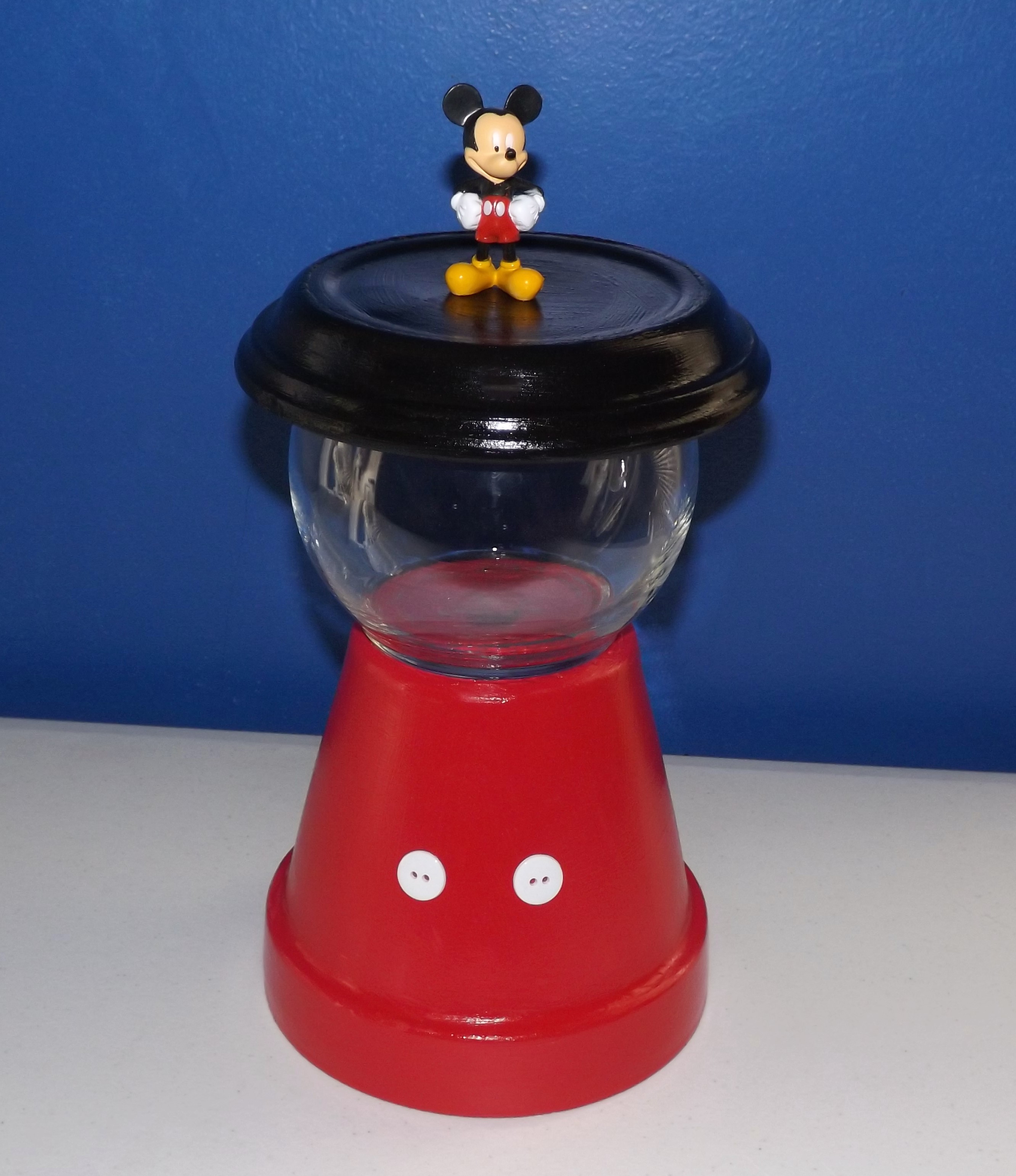 This craft project combines two of my favorite things: Mickey Mouse and candy. I’ve made a candy jar before, but this one was much more fun because my family and I are huge Disney fans, and we are planning on taking a trip to Disney World next summer.