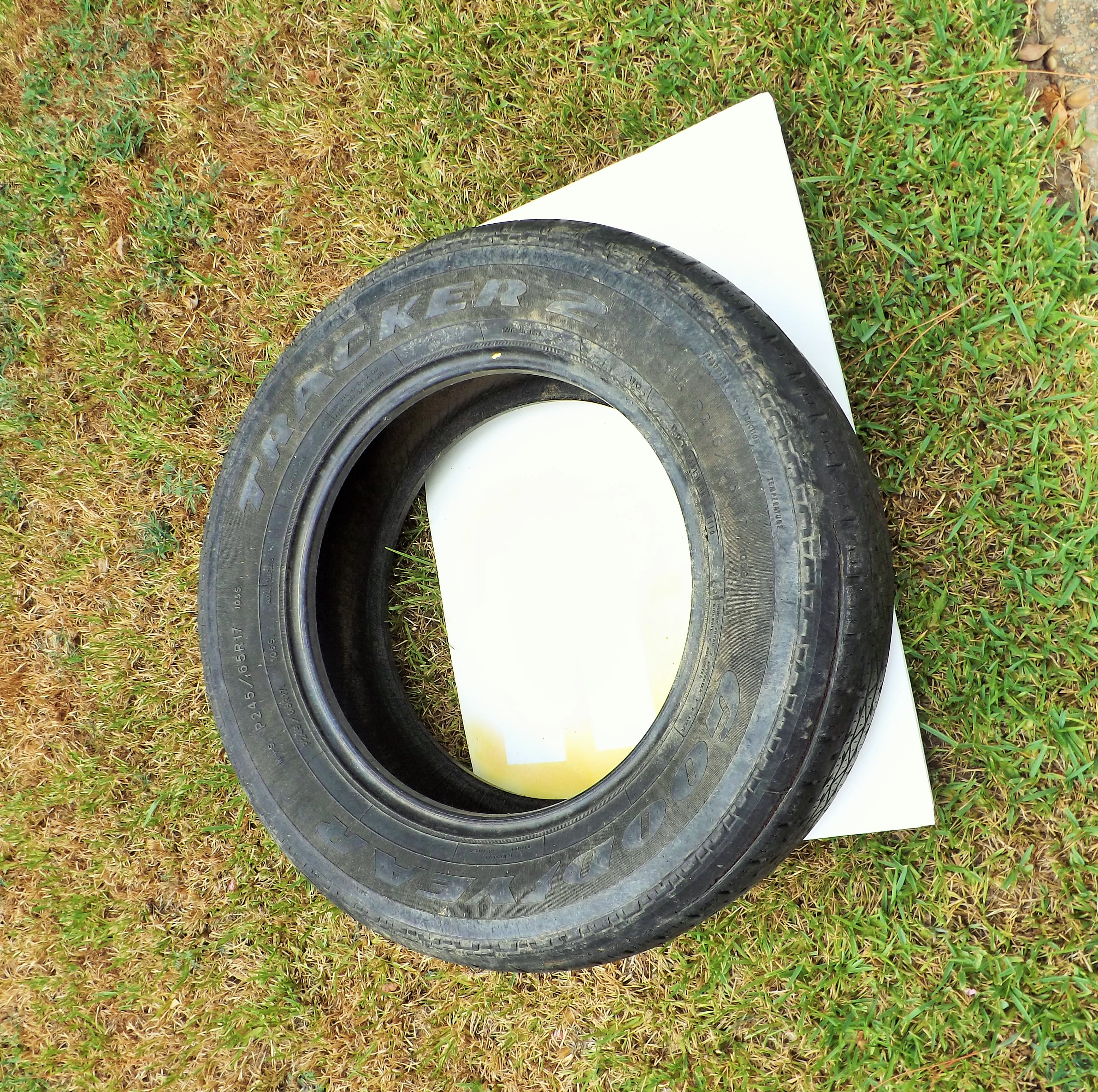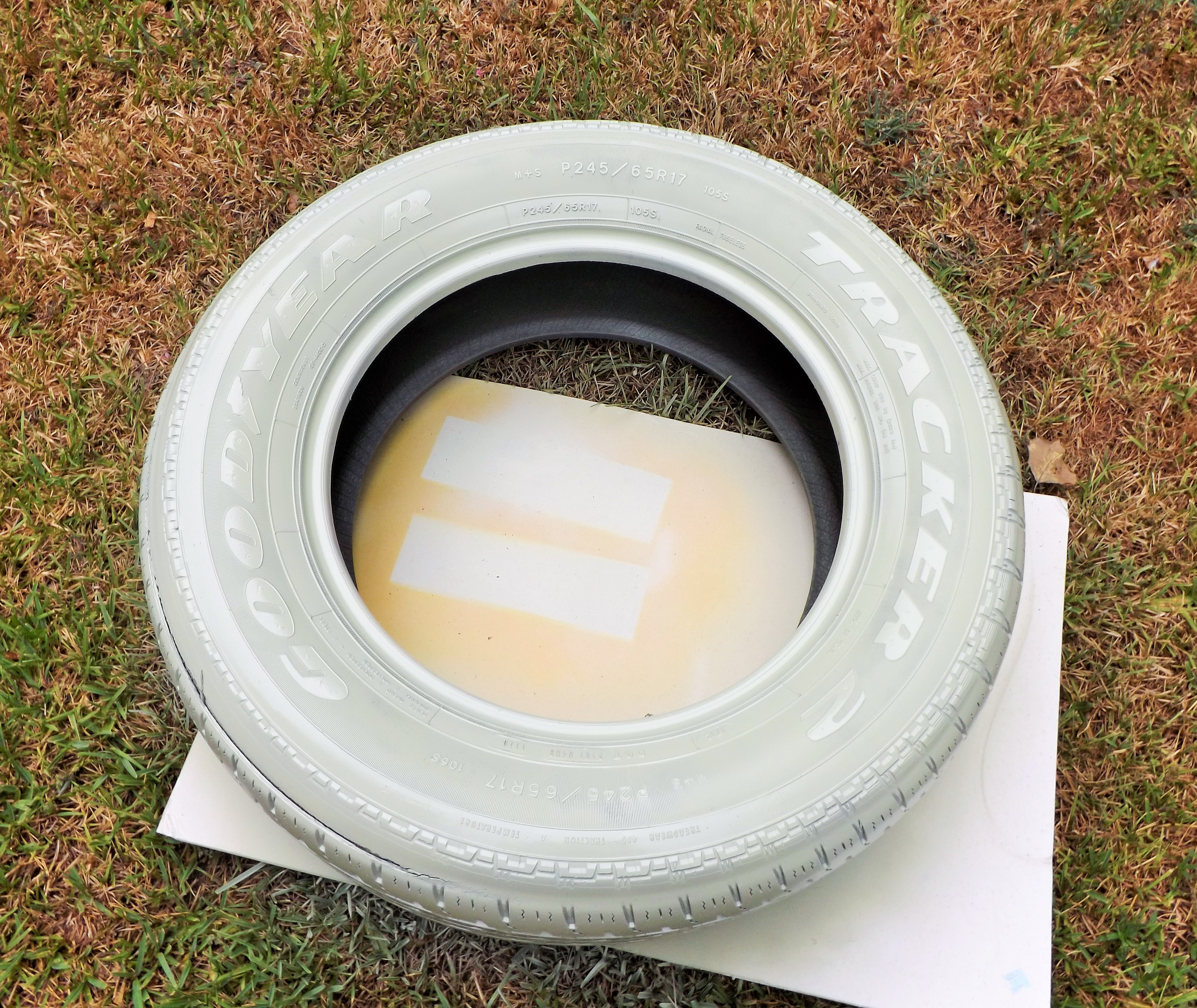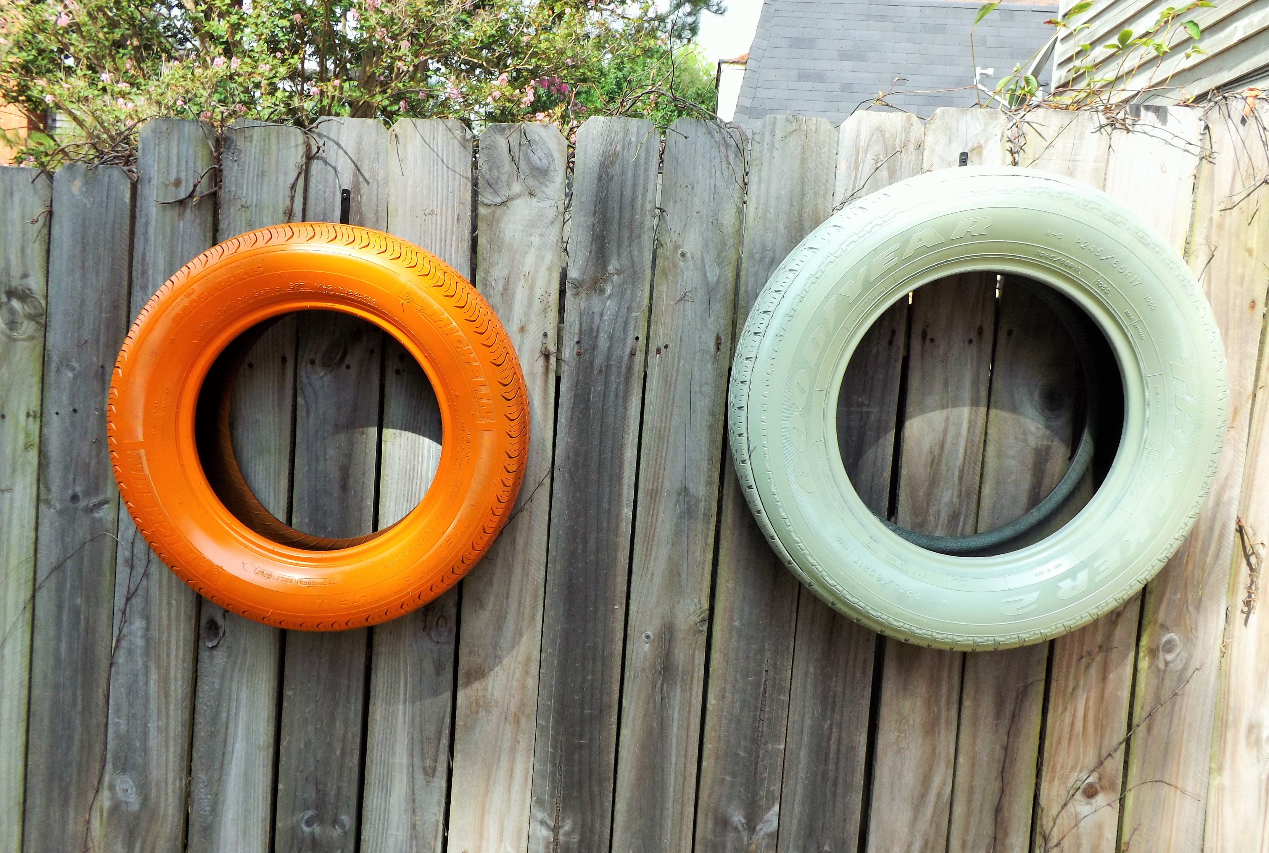 First, I rinsed off and spray painted two old tires.
