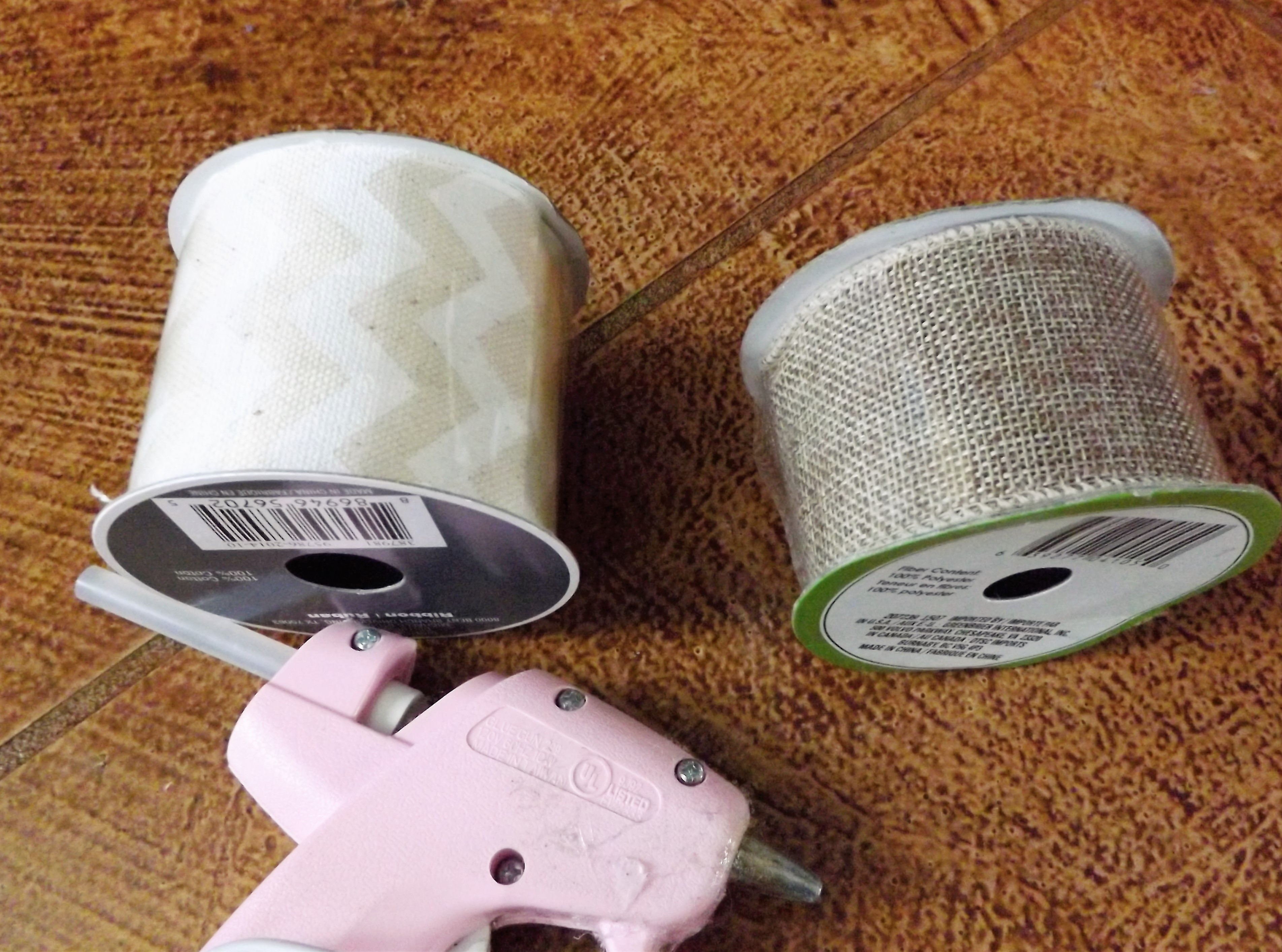 I used burlap ribbon, white paint, wood chalk, and a hot glue gun to complete the frames.