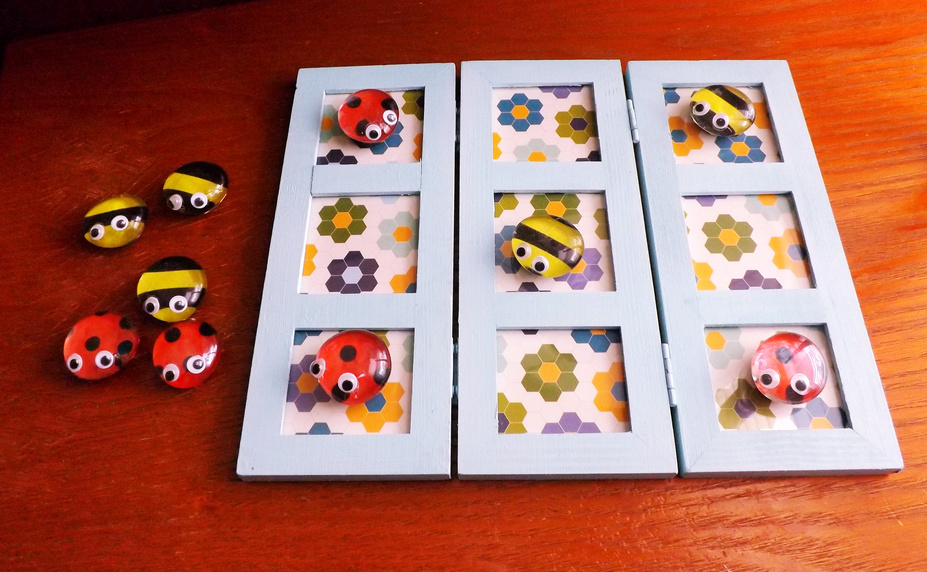 This post is all about fun and games! I bought a folding frame a few months ago and knew that it would be perfect to use as a tic tac toe board. So many of us grew up playing this game with friends and family. I remember playing tic tac toe with classmates when we were at school. I wanted to use this project as an opportunity to introduce the game to my son.