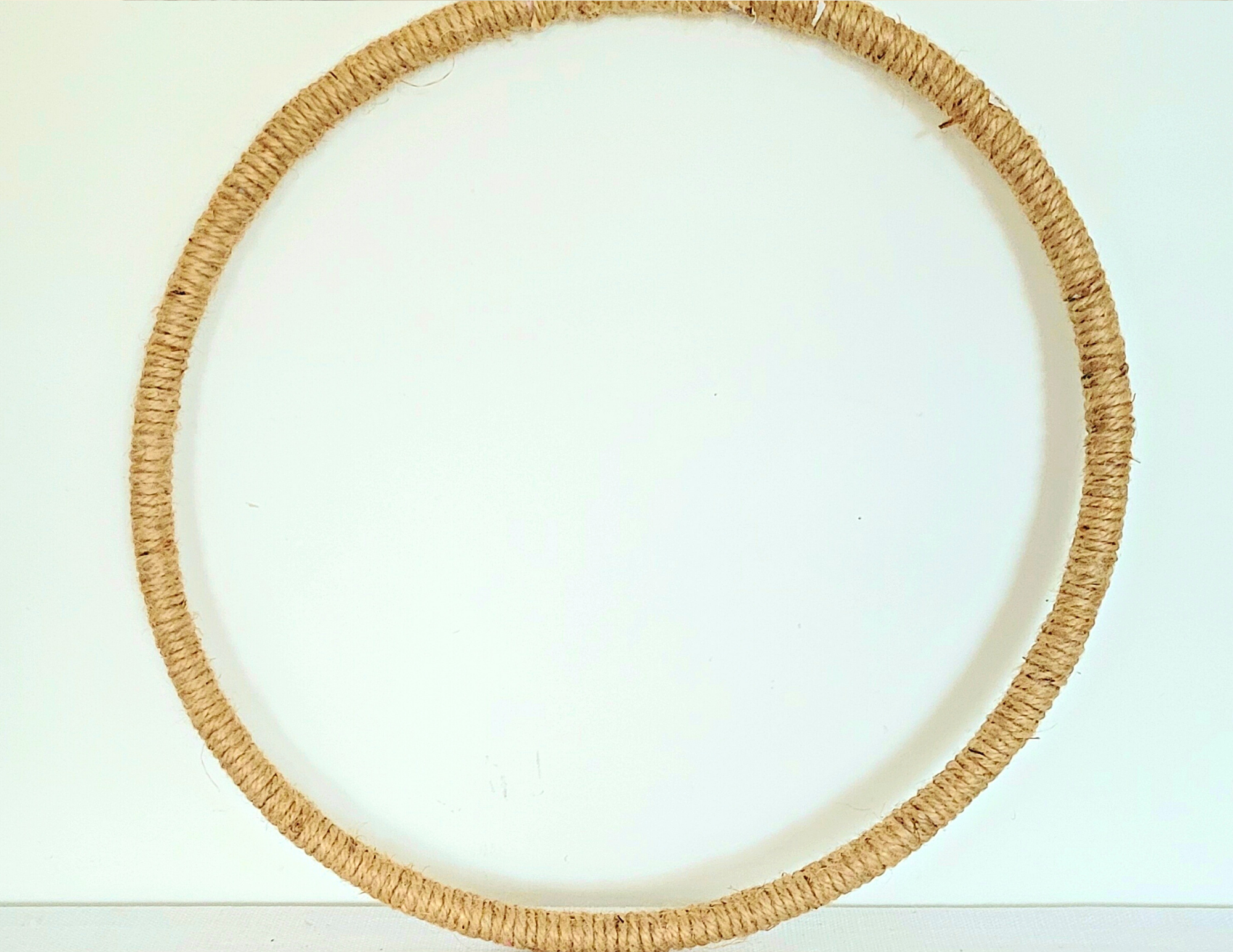 1. Wrap and then glue the jute rope around the hoop until completely covered.