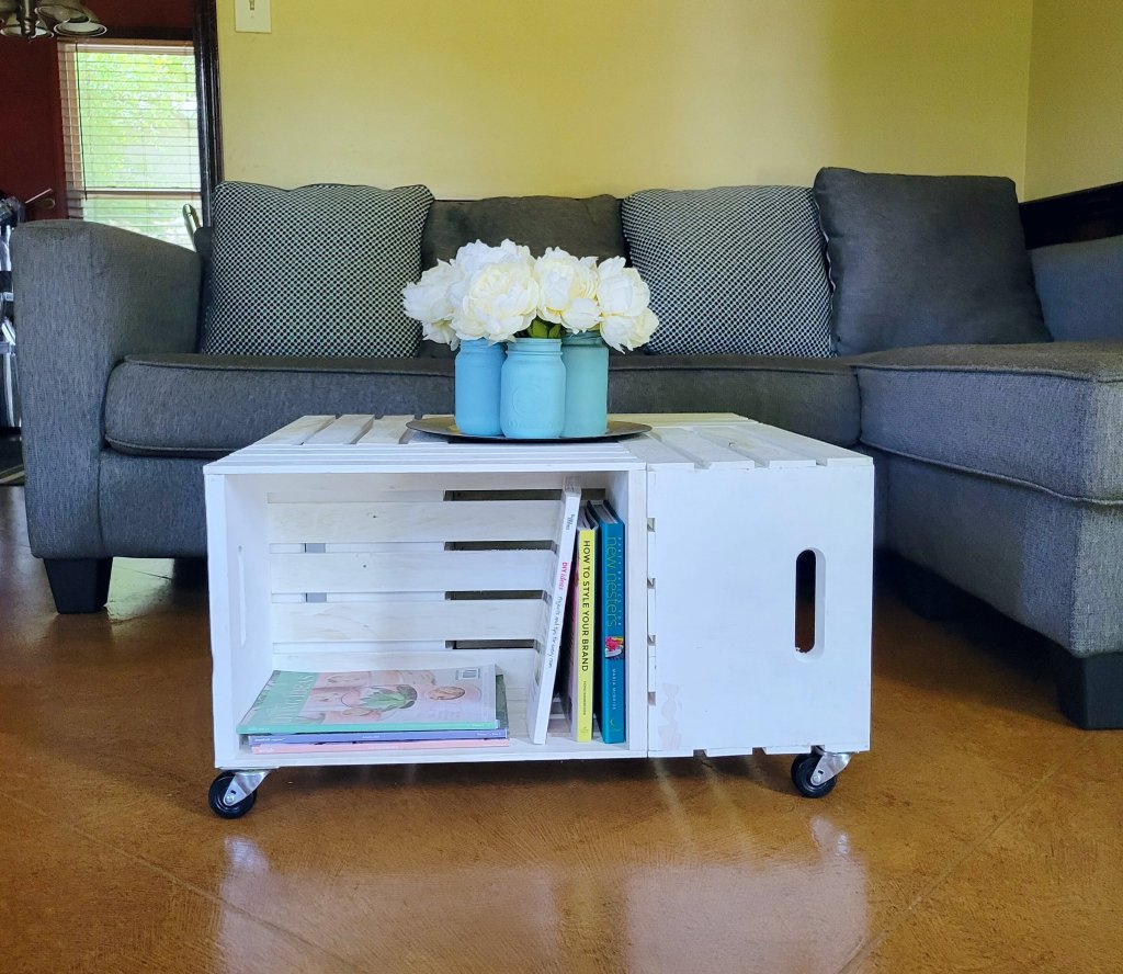 Below are some photos of a crate coffee table I made for my living room. Inspiration for this project was found at DIY Everywhere.