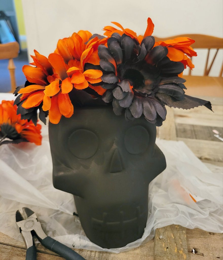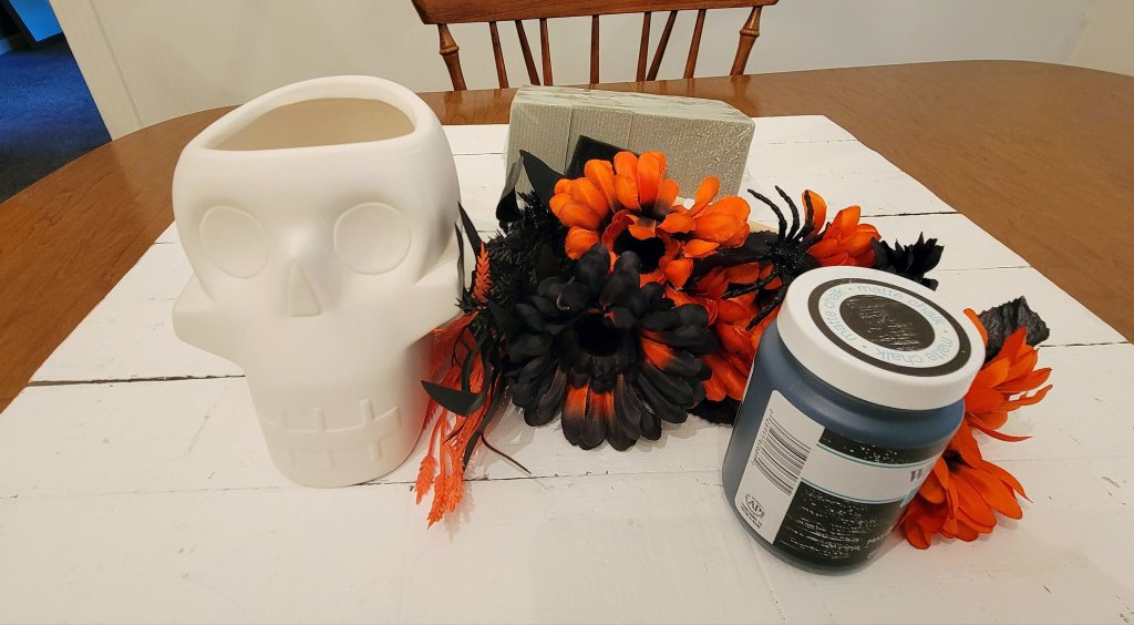 A few days ago, I decided that I needed a centerpiece for my table. So, I made a floral arrangement that’s perfect for Halloween.