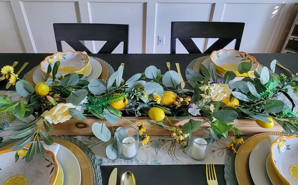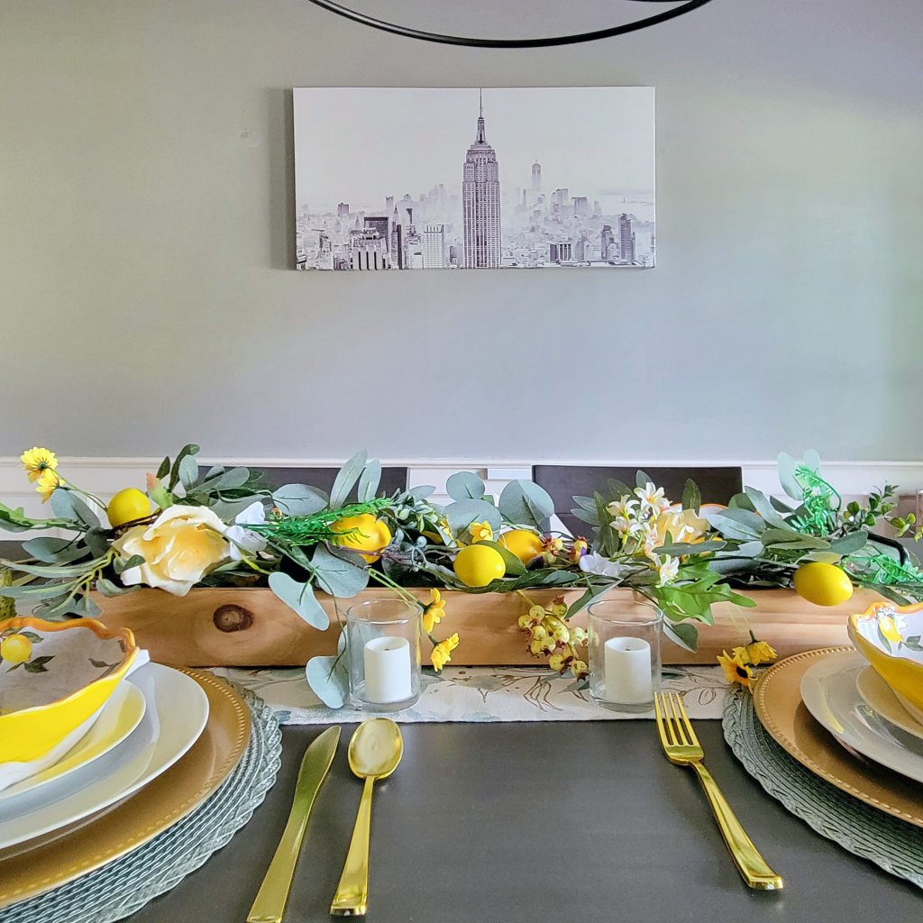 Lemon-Inspired Table Setting: Set a vibrant and inviting table for your guests by incorporating lemon-themed elements. Use colorful placemats, table runners, napkins, and utensils. Accentuate the setting with lemon-printed dishes, yellow glassware, or even a lemon floral garland for decoration.