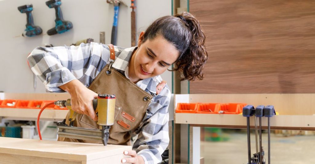 The compact size of brad nailers makes them easy to handle, even for beginners. They work well with thinner materials, such as veneers or plywood, commonly used in DIY upcycling projects. Which nail gun is best for DIY upcycling projects often depends on the type of work, and brad nailers excel at intricate and detailed tasks.